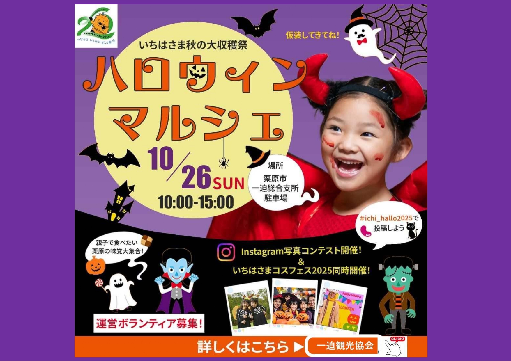 - いちはさま秋の大収穫祭~ハロウィンマルシェ~ 出店者等決定!皆様、お疲れ様です。昨日はほぼ一日雨模様でしたが、本日はカラッとした快晴で気持ちいい一迫です(^^)v さて、… 続きを読む: いちはさま秋の大収穫祭~ハロウィンマルシェ~ 出店者等決定!