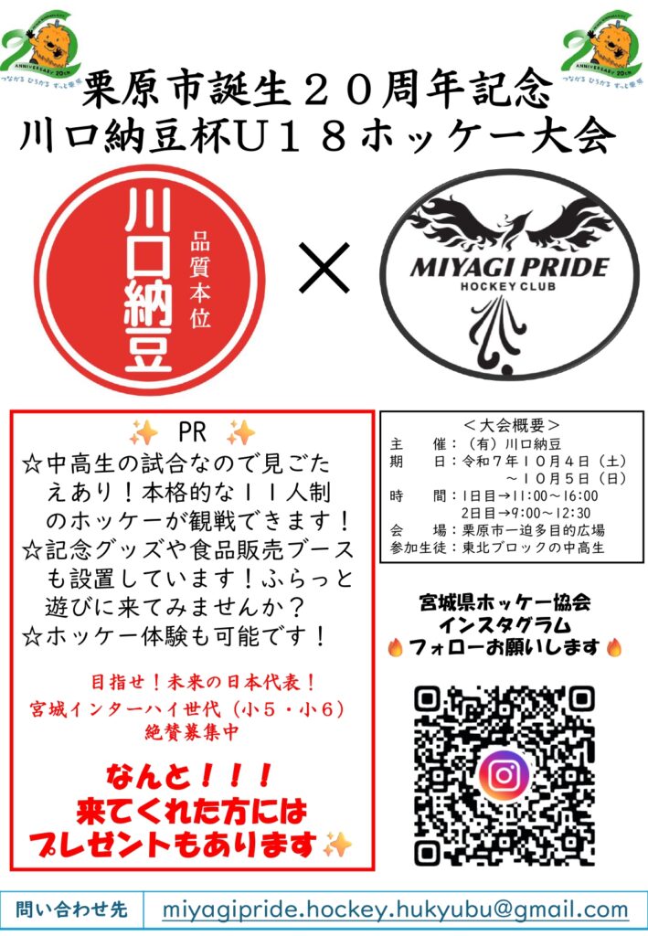 さて、「栗原市誕生20周年記念 川口納豆杯U18ホッケー大会」 を開催いたします。