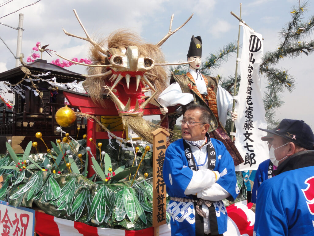 住民総出で山車づくりなど行い、当日は行武具甲冑に身を固めた遠藤家の家臣団を先頭に、各行政区ごとに川口囃子と掛け声をかけながら運行される山車、手踊り、獅子舞、鹿踊、神楽など地区の郷土芸能が一堂にそろって披露されます。