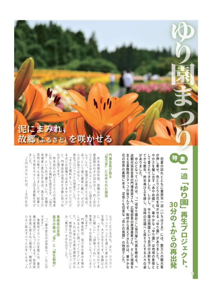 さて、栗原市観光物産協会が3か月毎に発行されている「コ・シェル」に4月12日(日)開催の「火伏まつり」と6月開催予定の「ゆり園まつり」の2つを特集していただきました。