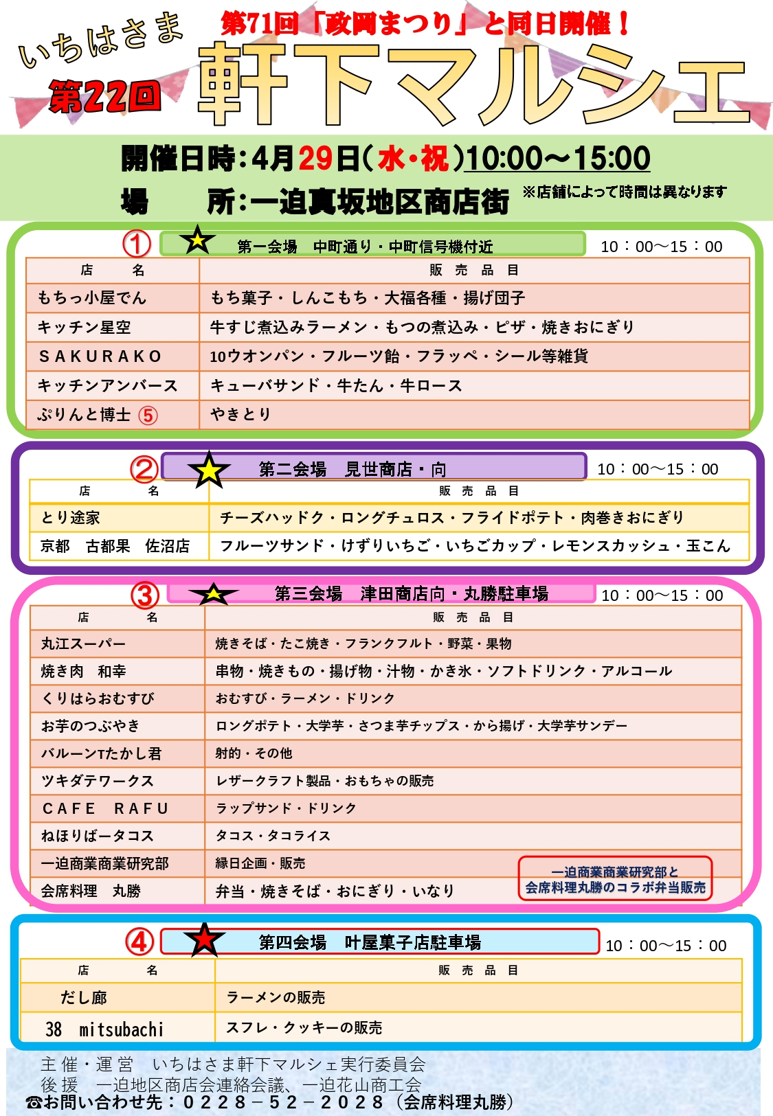 さて、4月29日(水・昭和の日)は真坂商店街において第71回政岡まつりを開催いたしますが、いちはさま軒下マルシェも実行委員会主催で同日開催されます。